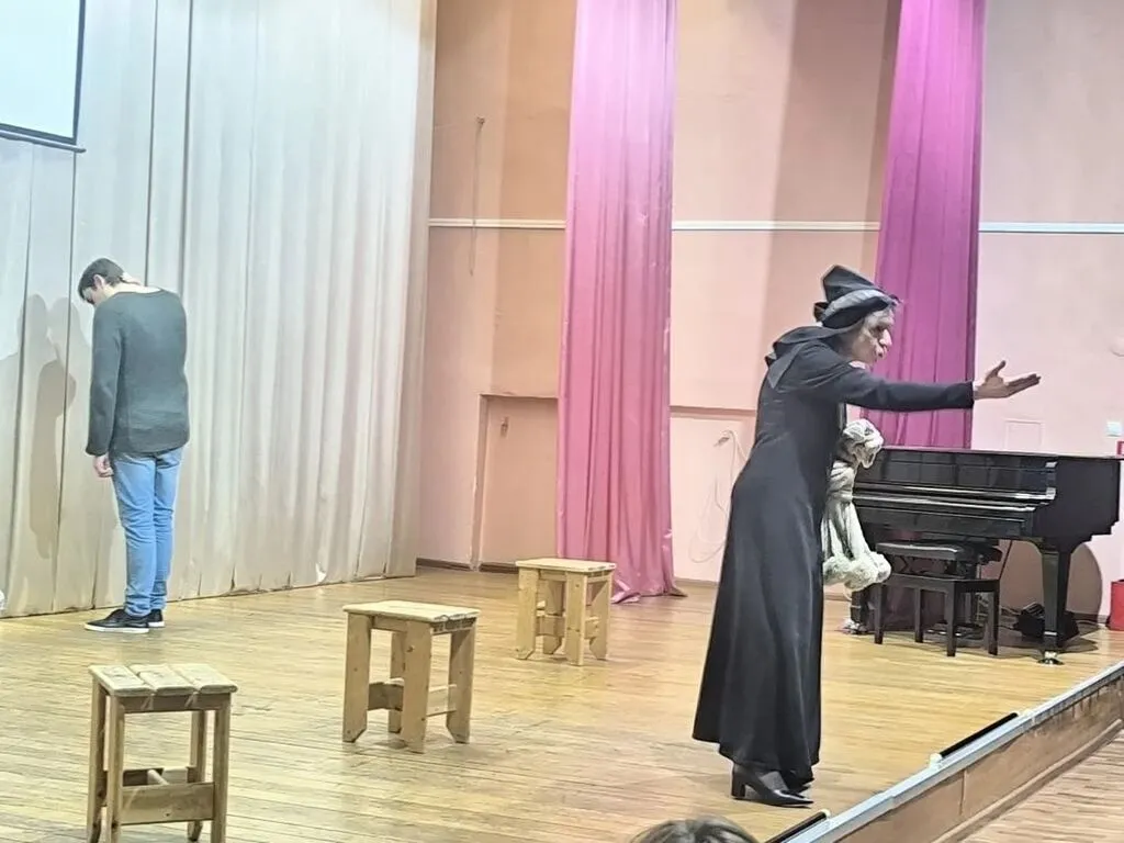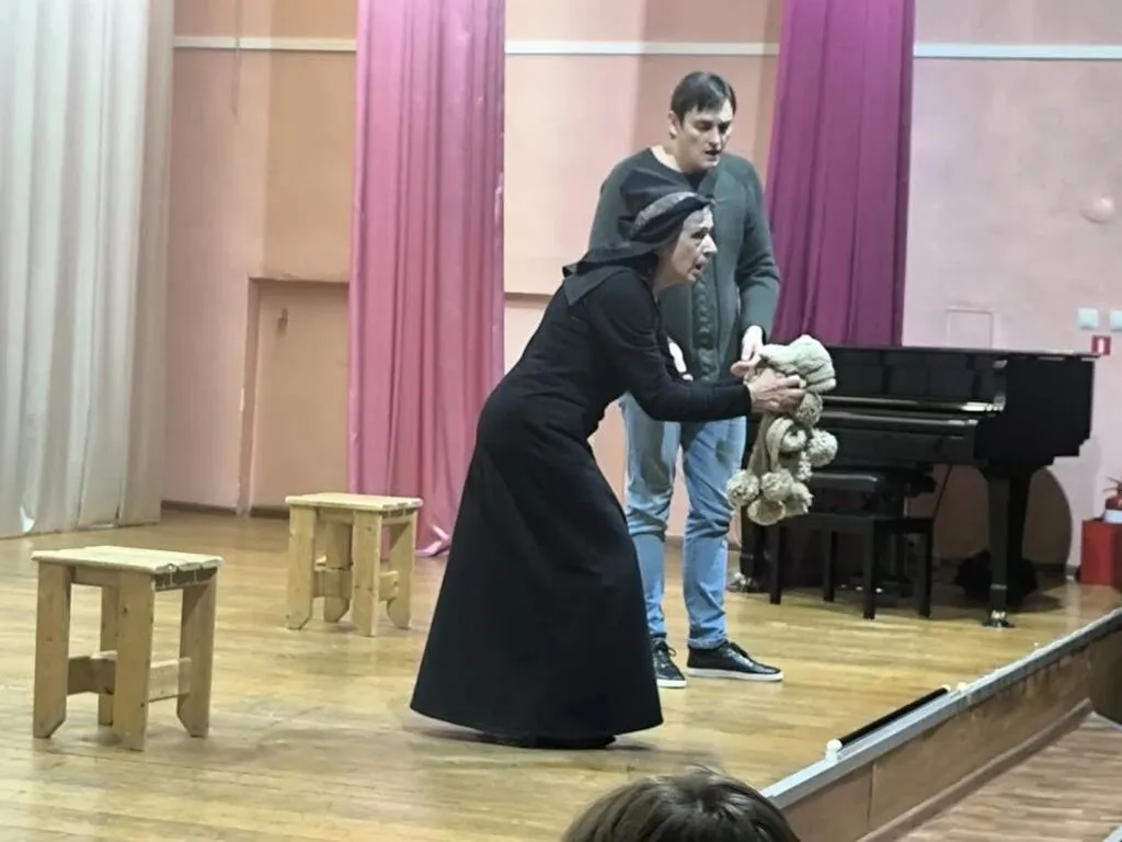 Сегодня на сцене Детской школы искусств № 35 состоялся показ спектакля «Муму» по мотивам одноименной повести И. С. Тургенева, представленного Литературным театром «Слово» государственной филармонии Кузбасса имени Б.Т.Штоколова (г. Кемерово).