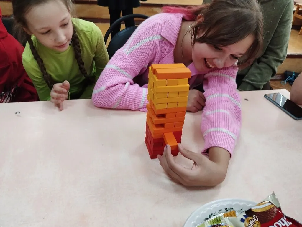 Дети с удовольствием играли в настольные игры. Так же был всеми любимый "Мистер Твистер". Эта игра, как всегда, вызвала бурю эмоций и заставила нас вывернуться наизнанку в самых невероятных позах! Красные, синие, зеленые и желтые круги стали ареной для настоящих акробатических этюдов. Смех и веселые возгласы не умолкали ни на минуту, пока участники пытались удержать равновесие и не упасть на пол. "Мистер Твистер" в очередной раз доказал, что для веселья не нужны сложные правила – достаточно лишь желания подурачиться и хорошей компании!